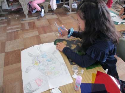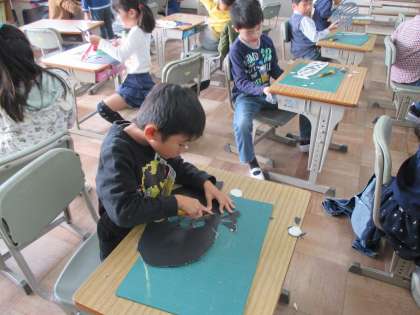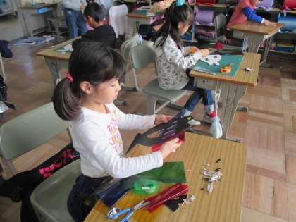 今日の2年2組の1・2時間目は図工の時間で、「ひかりのプレゼント」を作っていました。