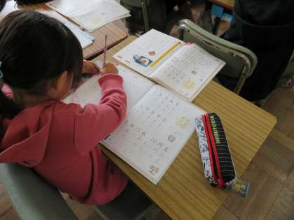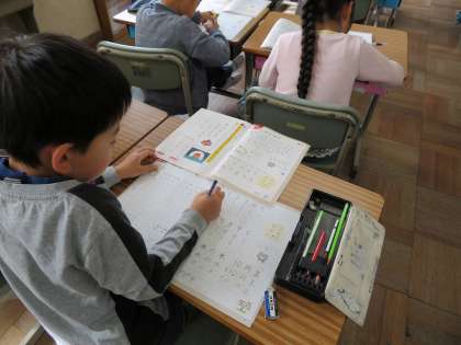 今日の2年2組の2時間目は書写の時間で、横書きの数字の書き方について練習をしていました。