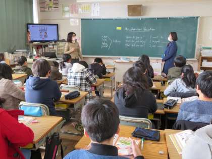 今日の6年1組の3時間目は外国語科の時間で、担任の先生とALTの先生とのTTで授業が進められていました。今日のめあては「My Summer Vacation」でした。