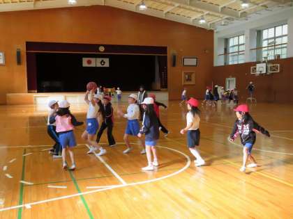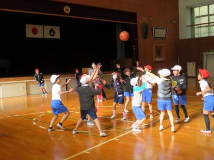 今日の3年1組の3時間目は体育の時間で、ポートボールのゲームをしていました。