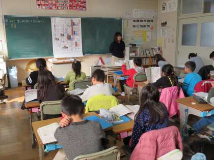 今日の3年1組の2時間目は社会科の時間で、「買い物調べを読み取ろう」とのめあてで授業を行っていました。毎日の社会生活に直結した内容の学習です。