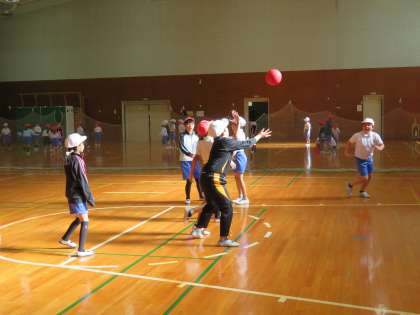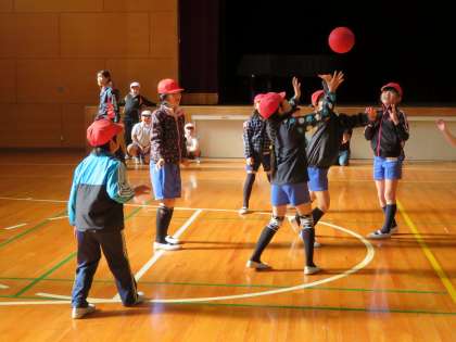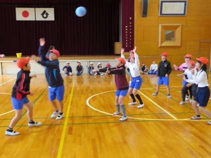今日の4年2組の3時間目は体育の時間で、ポートボールのゲームをしていました。