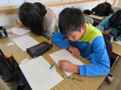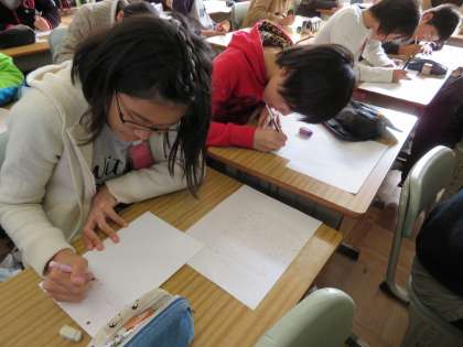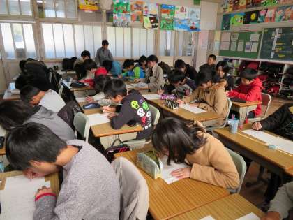 今日の6年1組の3時間目は卒業文集を書いていました。いよいよそういう季節になってきたと感じました。