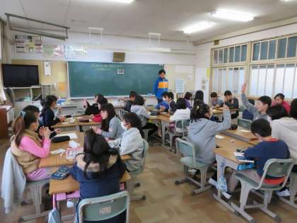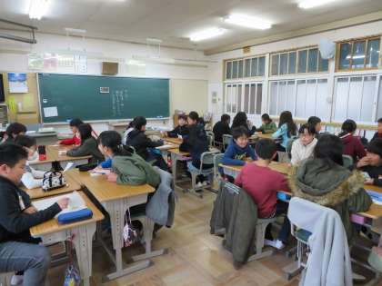 5年1組と2組はどちらの学級も「運動場に新しい遊具を作るなら、どんな遊具を作る?」をテーマに伝え合いをしていました。