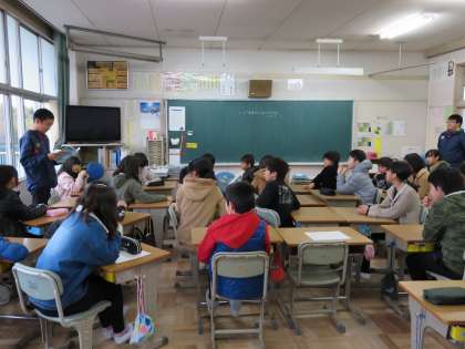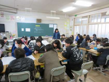 6年1組は「未来がよりよくなるために」、2組は「未来がよりよくあるためにpart5」をテーマに伝え合いをしていました。