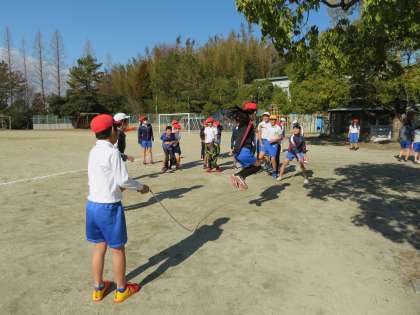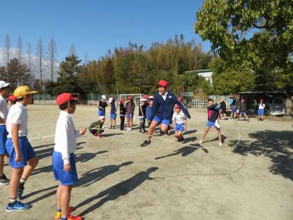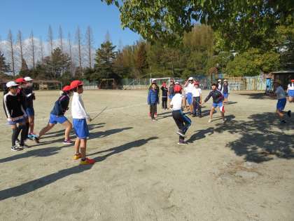 今日の6年1組の3時間目は体育の時間で、大縄跳びを跳ぶ練習をしていました。