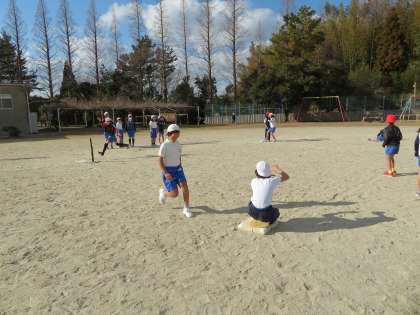 今日の4年1組の6時間目は体育の時間で、運動場でベースボール型ゲームを行っていました。寒い中ではありましたが、子どもたちは元気で楽しそうに走り回っていました。