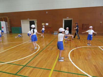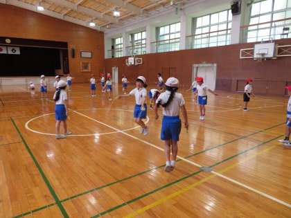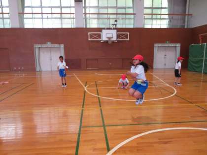 今日の3年1組の5時間目は体育の時間で、体育館でなわとびの練習をしていました。