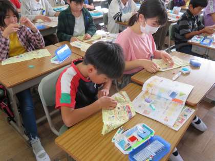 今日の5年1組の1時間目は家庭科の時間で、「いろいろな縫い方」の練習をしていました。