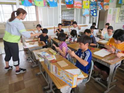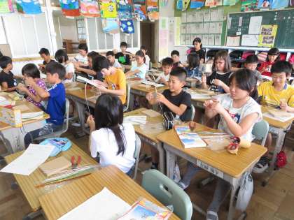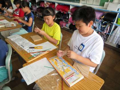 今日の5年2組の1時間目は図工の時間で、「立ち上がれ マイライン」という針金を使って自立する作品づくりを行っていました。