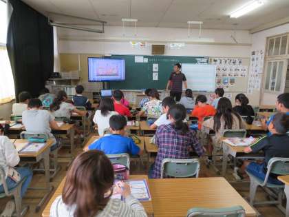 今日の6年1組の1時間目は外国語科の時間で、「紹介文をきいて内容を理解しよう」とのテーマで授業を行っていました。