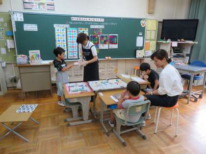 今日は学校訪問がありました。学校訪問とは知多教育事務所の指導主事の先生や東浦町教育委員会の教育長、委員、指導主事の先生等が学校を訪問し、授業を参観した後、学校や教員が指導を受けるものです。下の写真はそのときのわかば学級1組と2組の授業の様子です。1組では図工、2組では道徳の授業を行っていました。