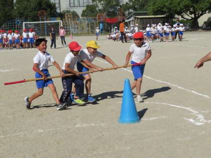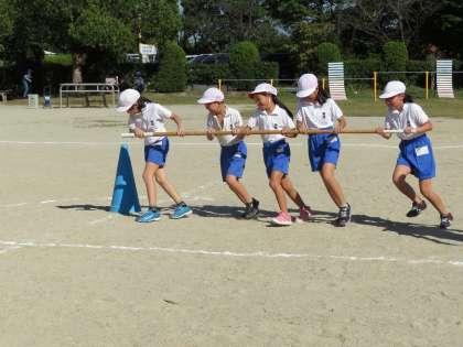 今日の3・4年生の5・6時間目は合同体育の時間で、合同運動会に向けて「台風の目」目などの種目練習をしていました。練習にもかかわらず、子どもたちは大いに盛り上がっていました。