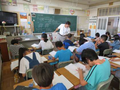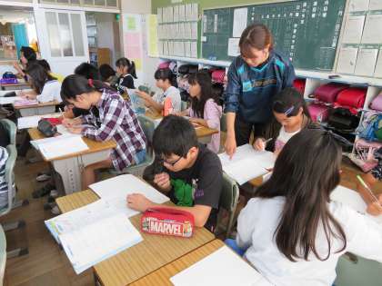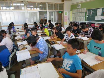 今日の5年2組の2時間目は算数の時間で、「面積の求め方」についての復習問題を行っていました。