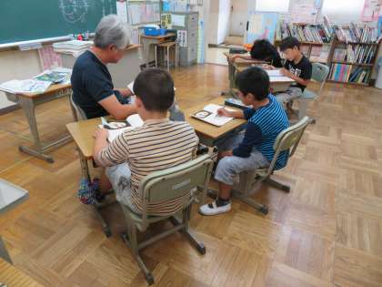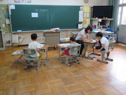 下の写真はわかば学級の3時間目の様子です。算数の計算問題などをやっていました。