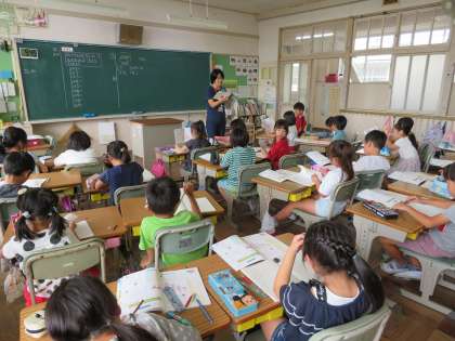 今日の2年1組の2時間目は算数の時間で、九九を使ったかけ算の勉強をしていました。