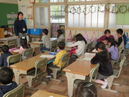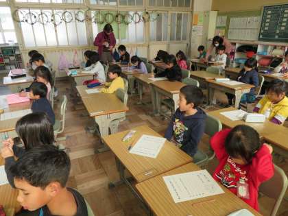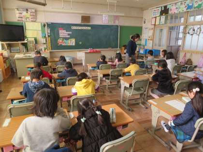 今日の1年1組の4時間目は食の指導として、東浦町の栄養教諭の氏原先生が来校し、「ぎゅうにゅうについてしろう」とのテーマのもと、牛乳に含まれる栄養などについて考える食の指導を行いました。