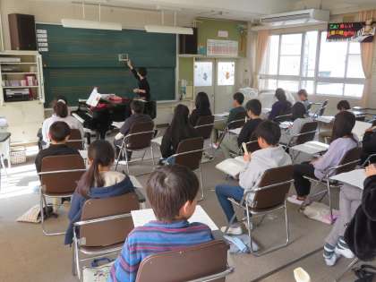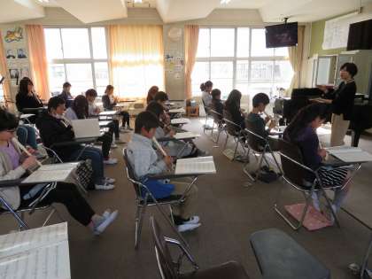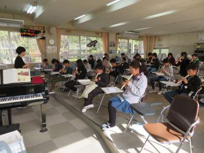 今日の6年2組の4時間目は音楽の時間で、「ホール・ニュー・ワールド」の曲をリコーダーで演奏していました。