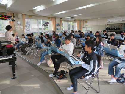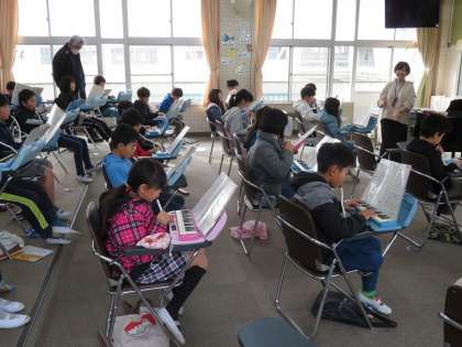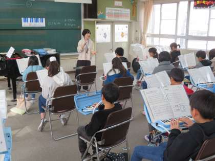 今日の4年1組の1時間目は音楽の時間で、「ラ クンパルシータ」という曲を鍵盤ハーモニカで練習していました。