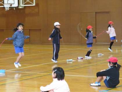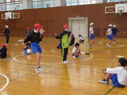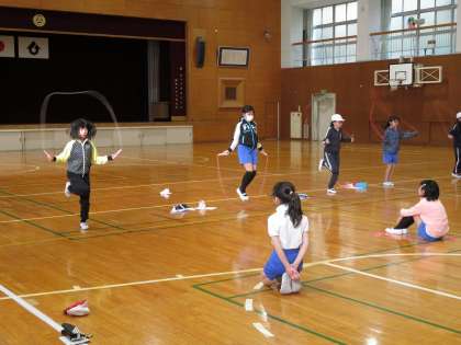 今日の4年2組の1時間目は体育の時間で、縄跳びの練習をしていました。