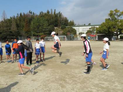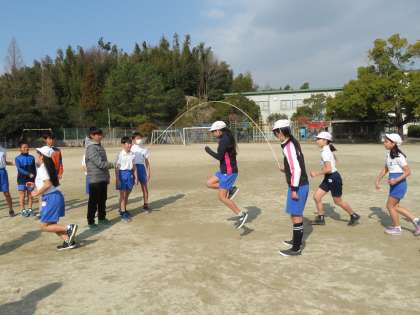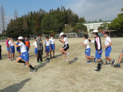 今日の6年2組の4時間目は体育の時間で、長縄跳びの練習をしていました。