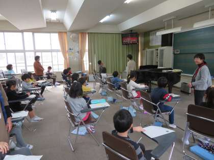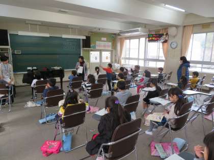 今日の1年1組の3時間目は音楽の時間で、音楽鑑賞をしていました。聴いた曲から浮かんだ様子や感じたことなどをプリントに記入していました。