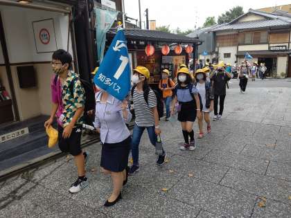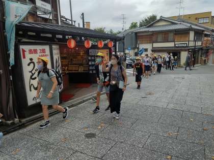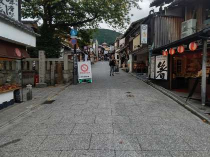 1組が清水寺に着きました。こんなに人が少ない清水坂は初めてです。