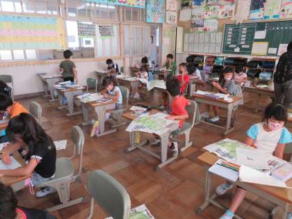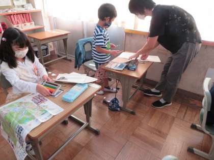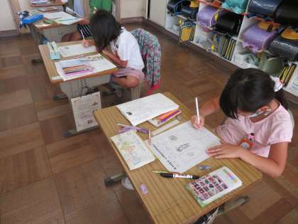 今日の1年1組の3時間目は生活科の時間で、昨日の東山動物園へ行った校外学習のまとめをしていました。