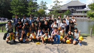 鏡池前でクラス写真を撮影しました。東大寺は修学旅行生がたくさんいました。この場所は人気の場所のようで、順番待ちをして撮影しました。
