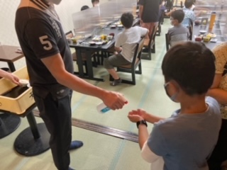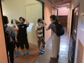 朝食前に健康観察と検温をしました。みんな元気です。