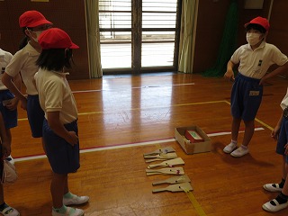 社会科で「むかしのくらし」の勉強をしました。そこで知った昔の遊びのコーナーをグループごとに作ったようです。来週、みんなで遊ぶようで、今日はその練習をしていました。おはじきコーナー、はねつきコーナー、ビー玉コーナーなど楽しそうなコーナーがたくさんありました。