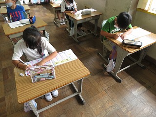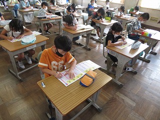 国語の時間に新出漢字の練習をしていました。書き順に気をつけて、丁寧に書いています。姿勢もバッチリです。