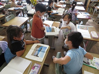 国語で説明文の勉強に入りました。教科書を読んで「問いの文(読み手に問いかけている文)」を探しました。一人で探した後、グループの友達と意見交換しました。