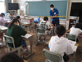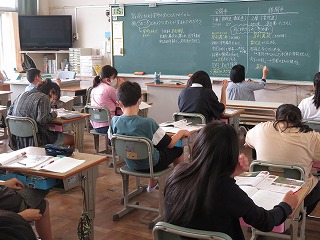 理科と社会の様子です。理科では、「てこのはたらき」の勉強で、大きなてこを用意し、「支点・力点・作用点」を確かめました。社会科では「金閣寺」と「銀閣寺」を比べ、室町時代の文化について勉強していました。