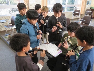同じ楽器の友だちと一緒に練習しました。