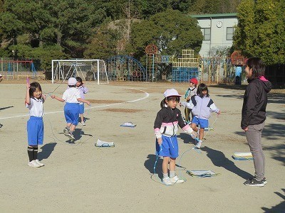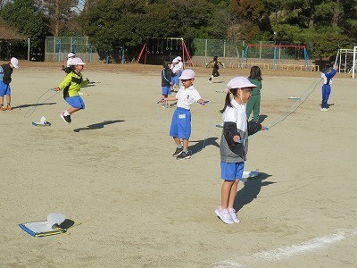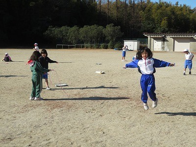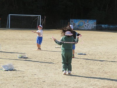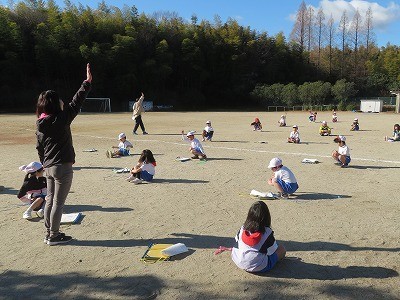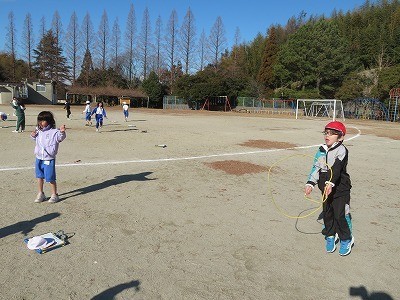 今朝は風もなくよいお天気だったので、運動場で行っていました。