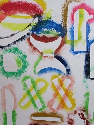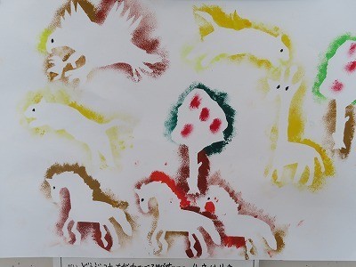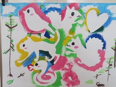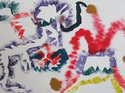 写した形からひらめいたことをまわりに描き足していくと・・・すてきな1枚の絵になりました。
