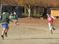 4年生が体育で三色鬼ごっこをしていました。1時間目で空気が冷たかったですが、すぐ...