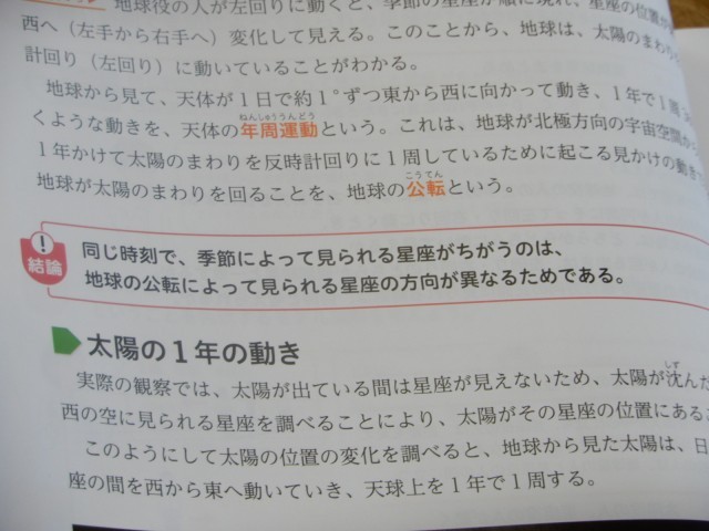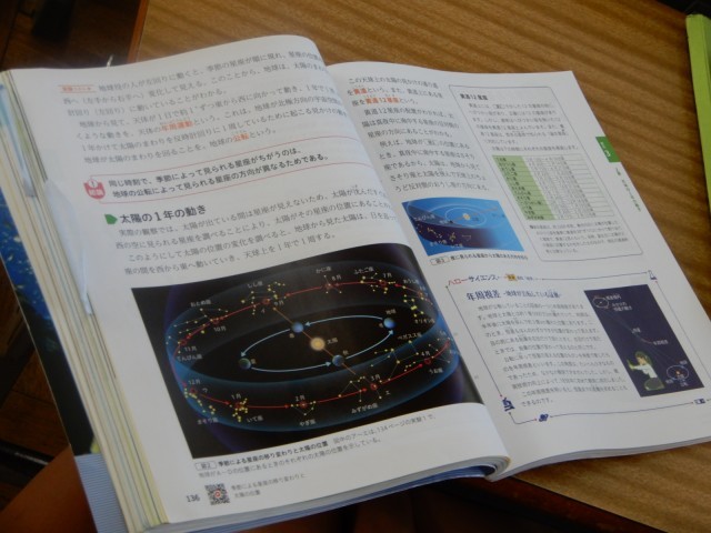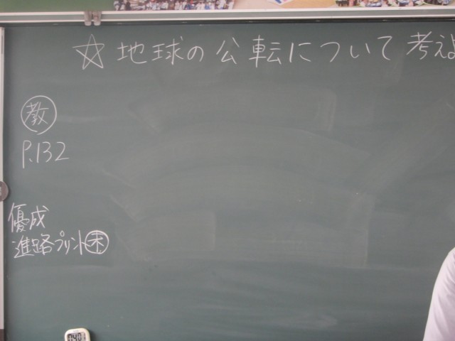 自転や公転について理解して、それと季節によって見られる星座の関係について学習を進めていました。なかかなイメージできない生徒もいるようですが、動画や模型を活用して学習を進めていました。