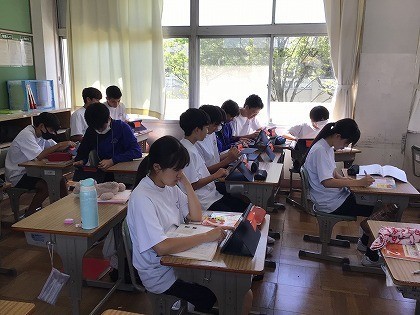 前の授業で立てた個人の目標に従って、3つのコースから選び学習を進めていました。