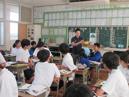 考えた後には、地球儀と月に見立てたボールを使って、具体的に説明をしていました。