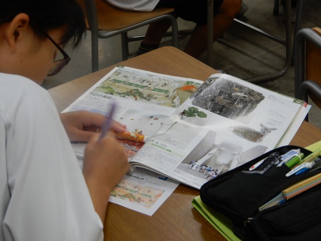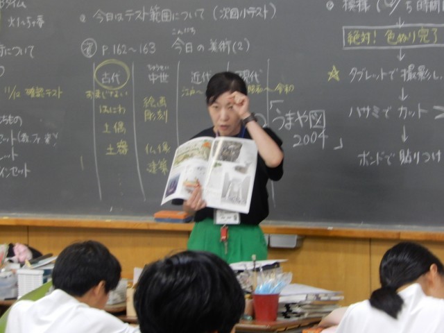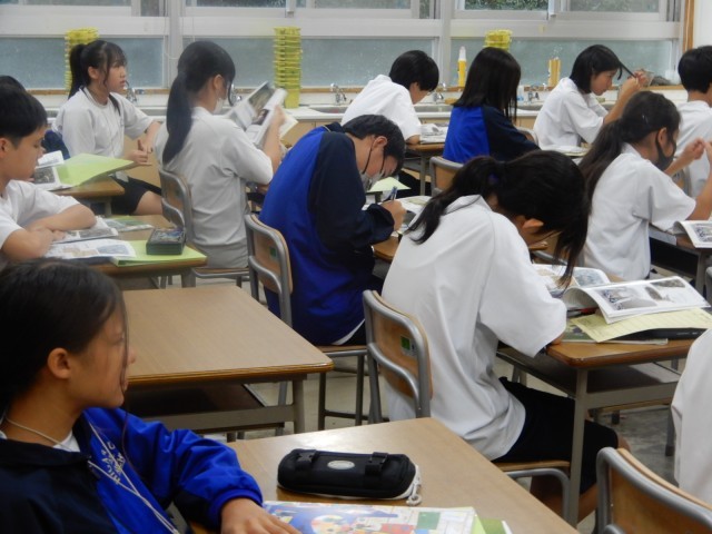 本日の1年生の美術は制作ではなく、現代美術について学習をしていました。現代美術の特徴について資料集を活用しながら考えていました。