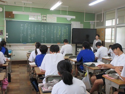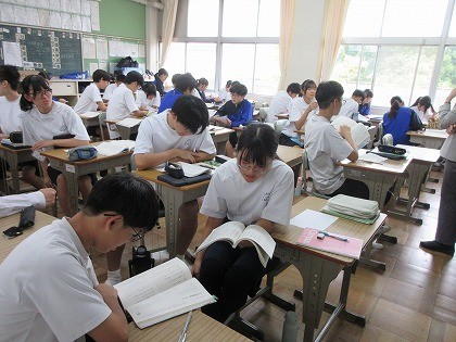 ペアになって順に音読したり、全体で音読したりして、古語の読みやリズムになじんでいました。