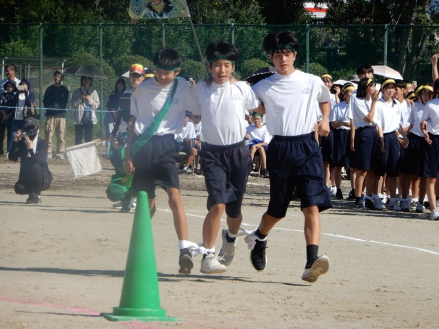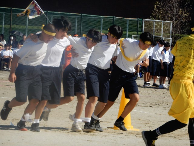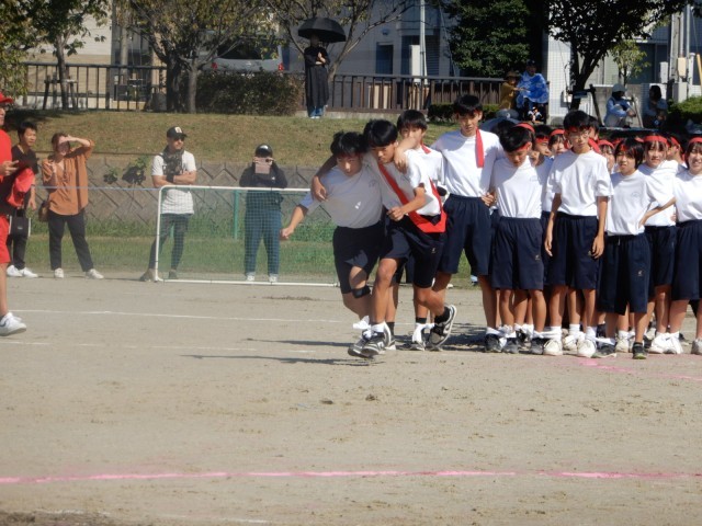 2年生の学年種目は「多人多脚リレー」でした。走る順番の工夫があり逆転に次ぐ逆転が見られました。