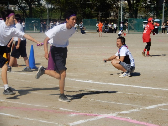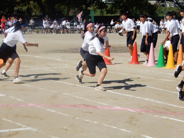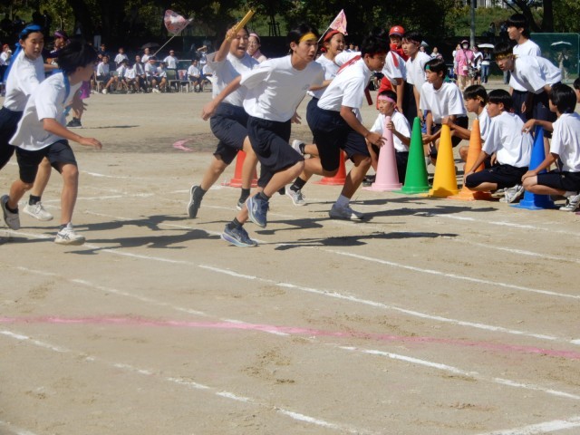 10/17(金)体育祭 縦割り対抗リレー 公開日 2025/10/17 更新日 2025/10/17 全学年 各団の各学年から選出された生徒でチームを組みリレーを行いました。とても見応えのある走りでした。 +5 1年生 2年生 3年生