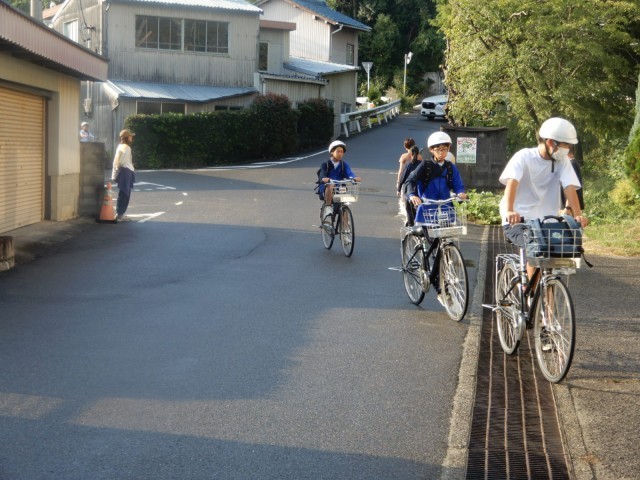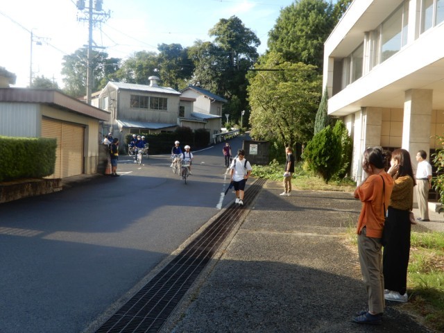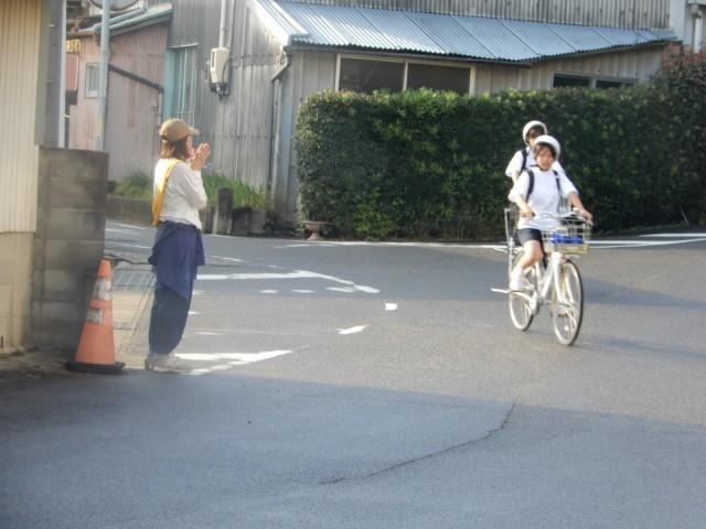 PTA生徒見守り委員会の活動で交通安全あいさつ運動を行いました。飛翔館前の交差点は朝の通勤等で車の通りもあり安全配慮が必要な場所です。生徒への声かけも含めてのあいさつ運動でした。