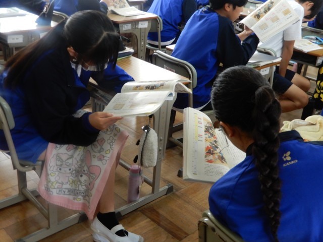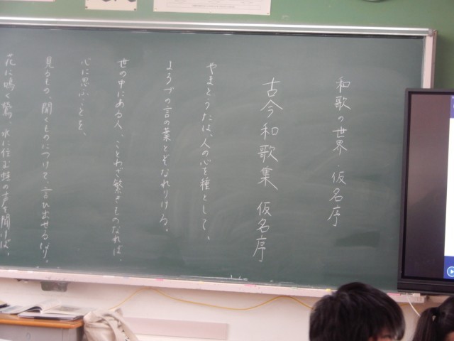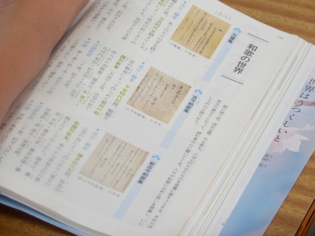「和歌の世界」の単元で、古今和歌集、新古今和歌集などがどのような時代背景の中でどのように作られたのかなど学んでいました。