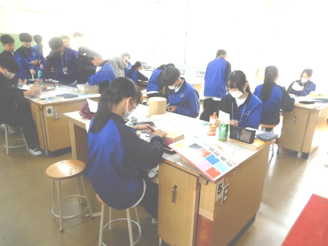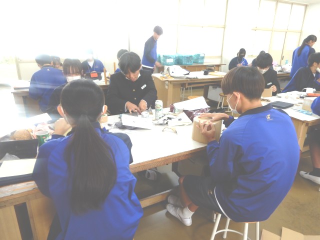 幼児のおもちゃがかなり形になってきました。安全面の含め、幼児がどのように遊ぶのかをイメージしながら作っている生徒も多く見られました。