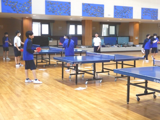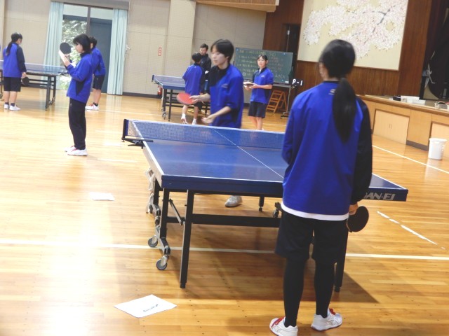飛翔館で卓球を行っていました。男子対女子で試合をしているケースも多く、和やかな雰囲気の中にも真剣さが伝わってきました。