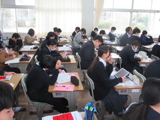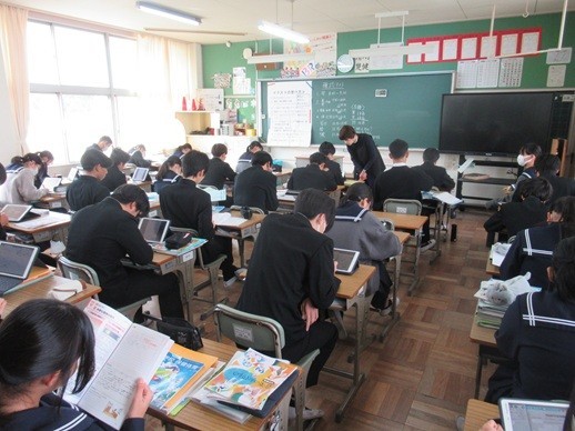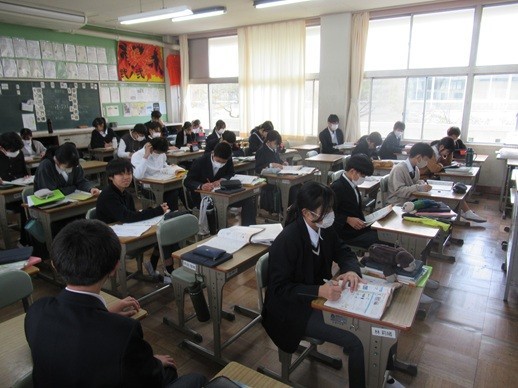 本日は確認テストです。1時間目の学活の時間、どの学年の生徒も確認テストに向けて勉強に集中する姿が見られました。中でも、タブレットを有効的に活用して学習する生徒が多かったです。